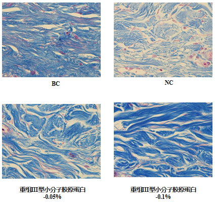 图:浓度 0.05%和0.1%的重组III型小分子胶原蛋白对胶原纤维含量有显著提升作用